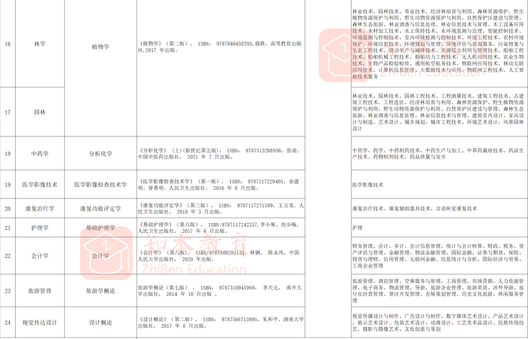 小学教育、英语、法学、护理学、康复治疗学、中药学、会计学、新闻学