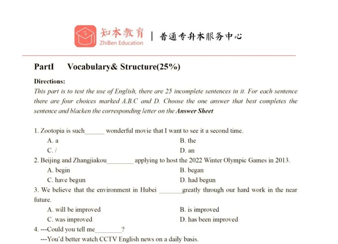 知本建议大家打印真题,认真做一遍后尝试自行理解文章大意,顺着命题人思路,找出考察的语法知识点,这样知本才算是授人以渔了。如果需要解析,也可以留言向我们反馈~